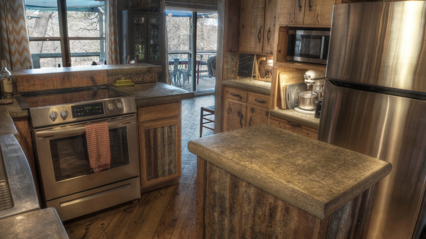 The Big House on the Frio River vacation home is 4 bedroom 2 1/2 bath located on the Frio River. Just steps away from the fresh clear waters of the Frio River and 1 mile from the town of Leakey, where you can shop for supplies or enjoy the charming hometown shops. Property also has a pool for those who want to relax and lounge with a large deck for outside enjoyment. Will sleep 14 comfortably in 5 queen beds, 4 upstairs, also upstairs one twin, as well as a sofa sleeper and twin in the living area with linens and towels supplied. There are 4 TV's, free wifi, fully equipped kitchen, laundry area and gas grill, wood burning grill and gas flat top for cooking out of doors.