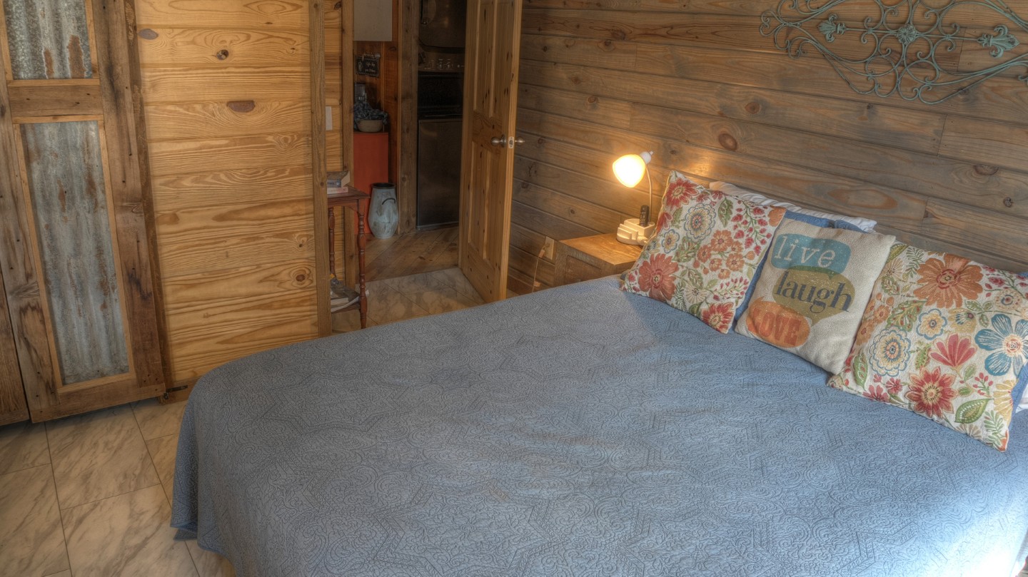 We have added a small bedroom space downstairs with a twin bed, perfect little private space. If you need more space there is a cabin on the property that sleeps six, two bedrooms, two baths with a queen size sofa sleeper in the living area. To check it out look up the Bunkhouse on the Frio River. The combination of both places gives large families room to spread out but be together. Both places still have some August openings and the river is flowing and the pool is cold. Book now for a great vacation.